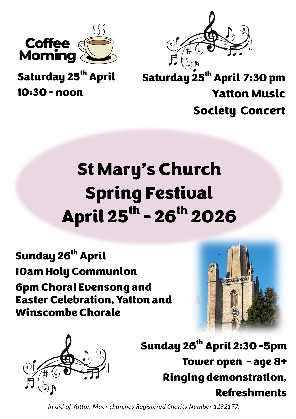 | Sat, 25th Apr 2026 | 10:30 to 12:00 | Coffee Morning All Welcome | Chapter House, St Mary's Church, Yatton |