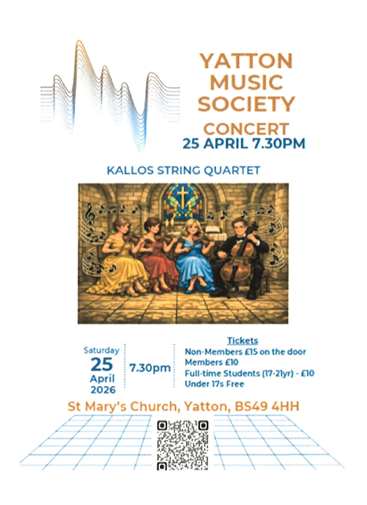 | Sat, 25th Apr 2026 | 19:30 | Yatton Music Society Concert Kallos String Quartet | St Mary's Church, Yatton |