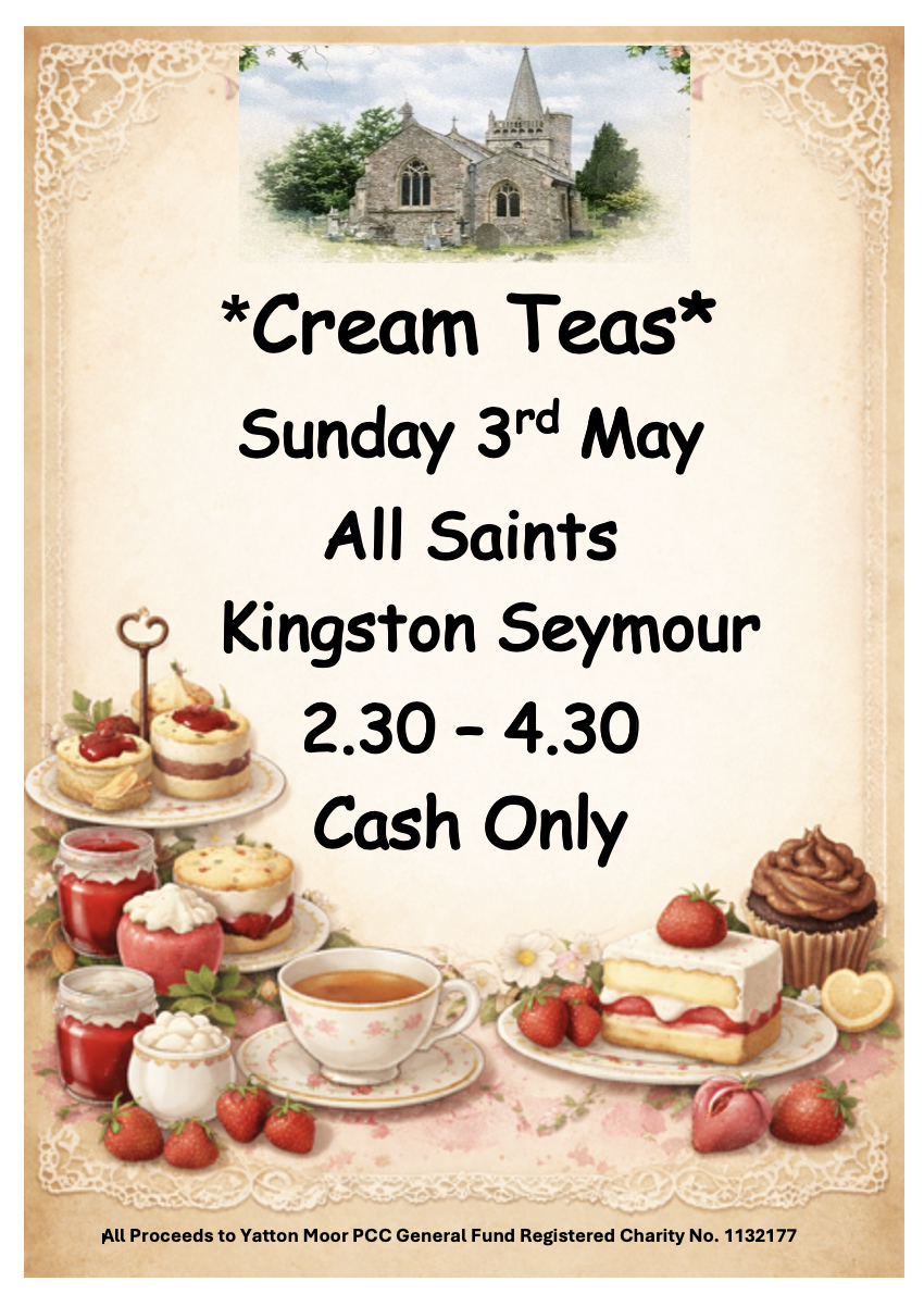 | Sun, 26th Apr 2026 | 14:30 to 17:00 | Tower Open + Cream Teas and Refreshments in the Chapter House All Welcome | Chapter House, St Mary's Church, Yatton |